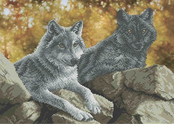 "Новозеландские волки, А3-К-779 Количество цветов бисера -14. Размер - А3 Материал - габардин подклеенный флизелином. Предлагаем подбор бисера.