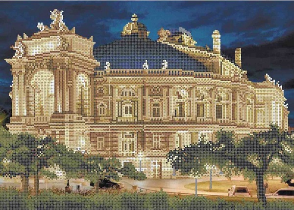 "Одесса.Опера.Вечер премьеры, А3-К-568 Количество цветов бисера -19. Размер - А3 Материал - габардин подклеенный флизелином. Предлагаем подбор бисера.