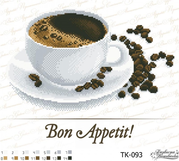 Схема "Кофе - Bon Appetit!" ТК-0934 для частичной вышивки бисером.