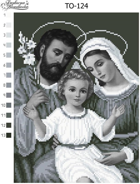 Схема Святое Семейство (черно белая) ТО-124 для частичной вышивки бисером.