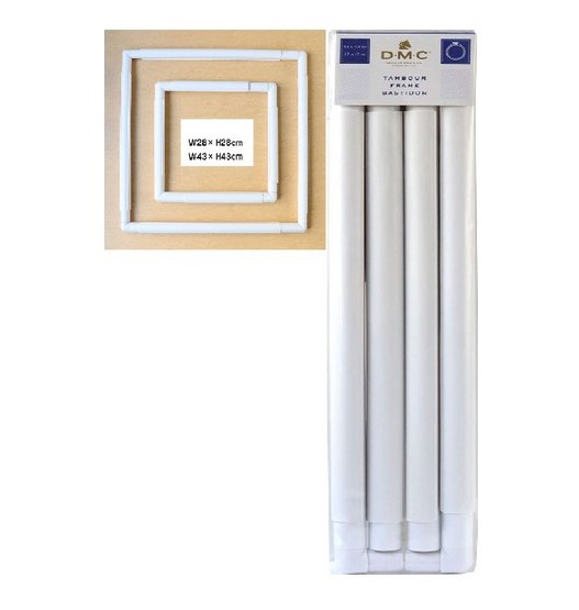Размер: 43*43 см. Пластиковые трубки вставляются в соединительные уголки, сверху раскладывается ткань и закрепляется с помощью клипс, которые натягивают и прочно удерживают канву.