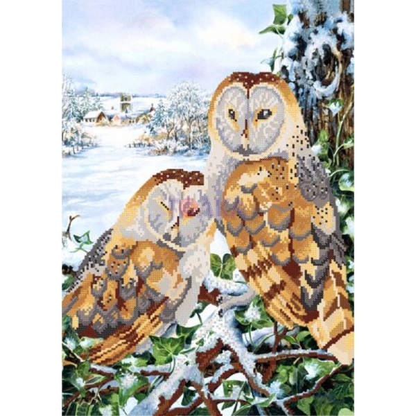 Наименование: Зимние совы Размер: 31х44 Кол-во цветов: 16 Ткань с рисунком для вышивания бисером, рисунок нанесен на атлас. Производитель: ТМ "Маричка"(Украина) По Вашему запросу наши менеджеры могут укомплектовать схему нужным бисером.