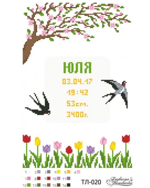 Схема "Метрика для ребенка "Весна" ТЛ-020 для частичной вышивки бисером.